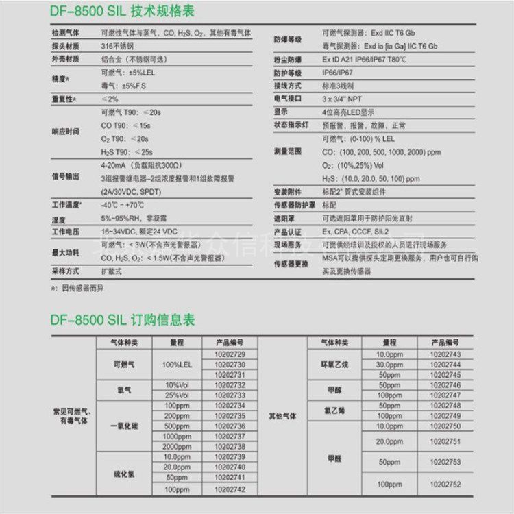 梅思安MSA DF-8500SIL系列氣體探測(cè)器